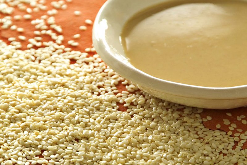 Tahini is the Arabic name for ground sesame seeds. It can be served as a dip or as a component of other dishes. The sesame paste has kind of an oily surface with a peanut butter-like texture. Middle Eastern restaurants use tahini by itself as a sauce or mix it with other ingredients to make other sauces and dishes. Often it is garnished with garlic and lemon juice. Hummus, a popular sauce, is made with tahini. Tahini sauce is also used to top Middle Eastern main dishes.